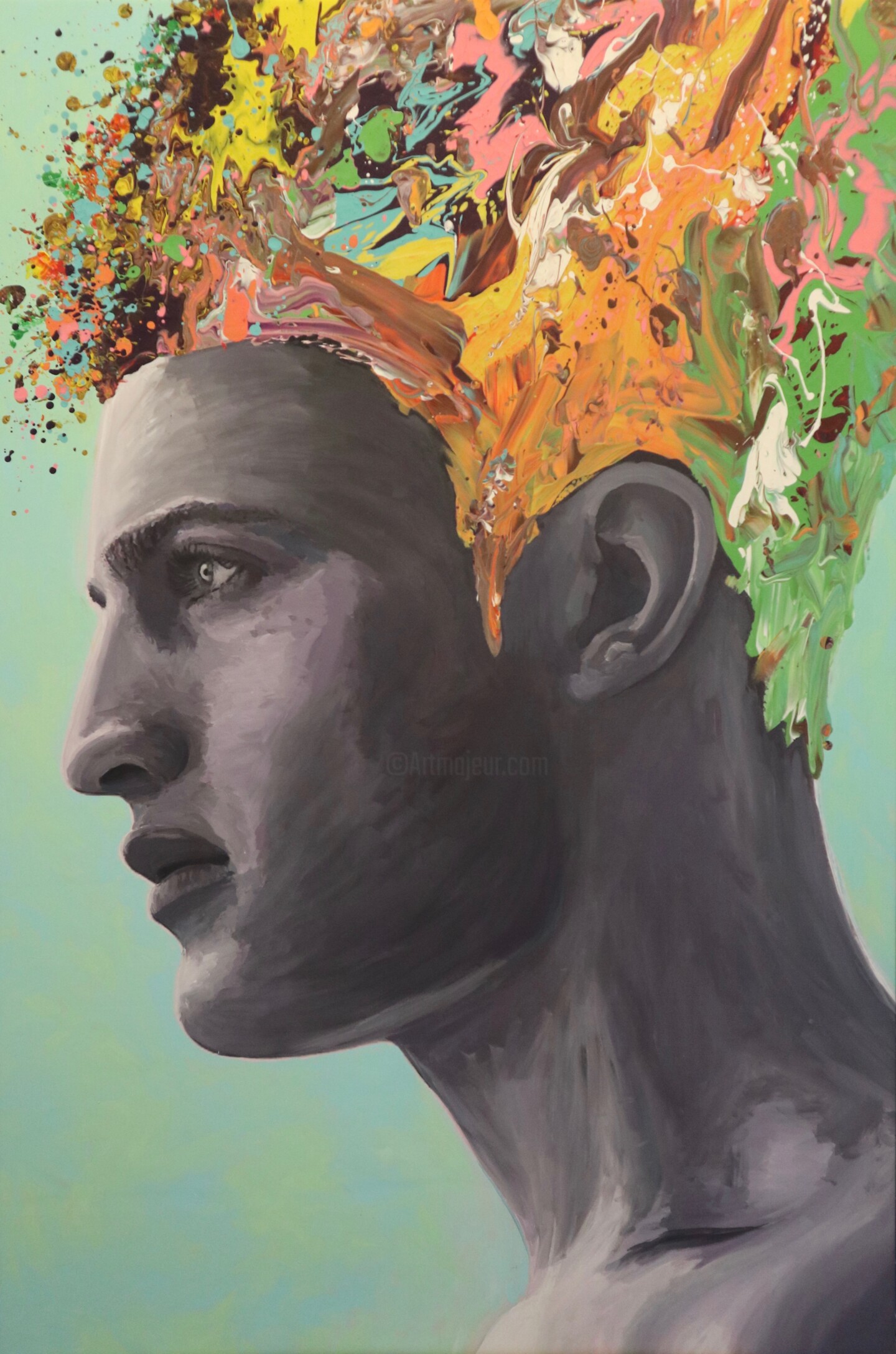 Ce portrait d'homme à la beauté sculpturale dans des couleurs contrastées, est un harmonieux mélange de l'art figuratif et de l'abstrait.