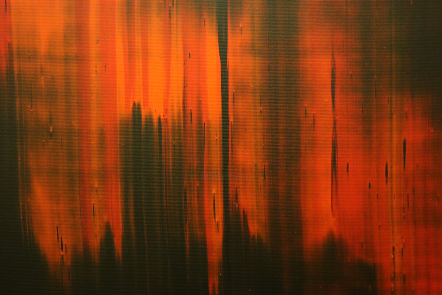 Magnifique oeuvre d’art, dans les nuances d'oranges et rouge sur un fond noire, inspirée par l’érosion des roches dans la nature.