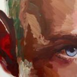 Magnifique grand portrait d'un homme aux yeux bleus de glace, à la beauté contemporaine.